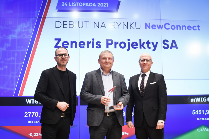 24 listopada 2021 r. na rynku NewConnect zadebiutowała spółka ZENERIS PROJEKTY S.A.