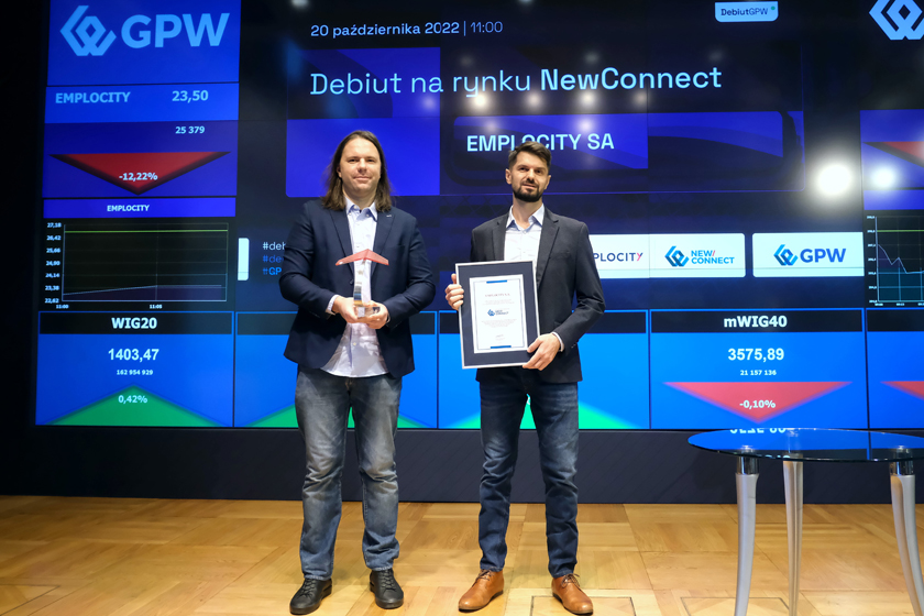 20 października 2022 r. na parkiecie rynku NewConnect zadebiutowała spółka EMPLOCITY S.A.