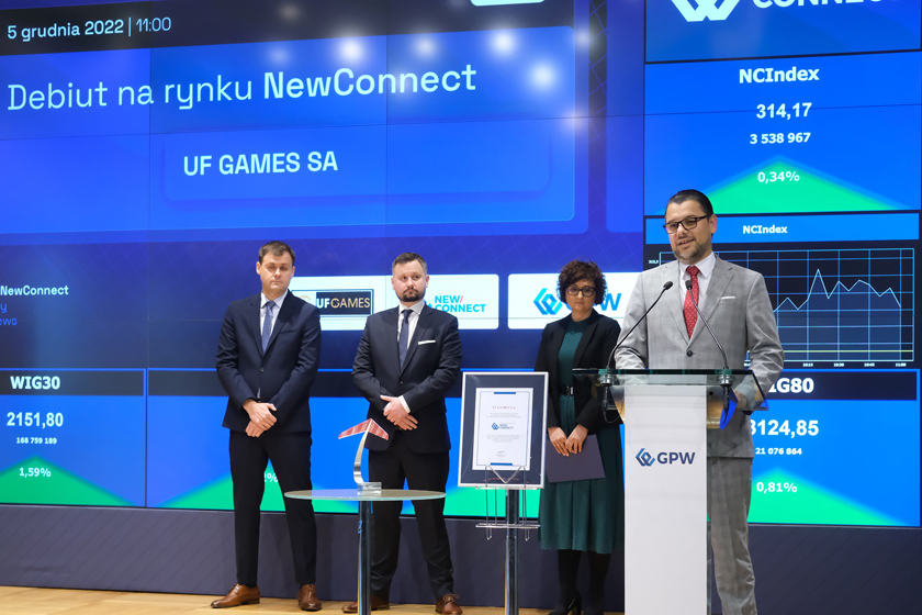 5 grudnia 2022 r. na parkiecie rynku NewConnect zadebiutowała spółka UF GAMES S.A.