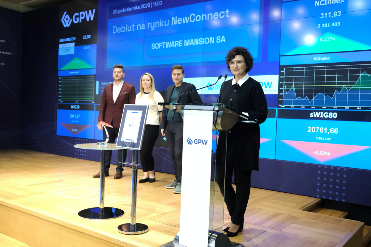 20 października 2023 r. na parkiecie rynku NewConnect zdebiutowała spółka SOFTWARE MANSION S.A.