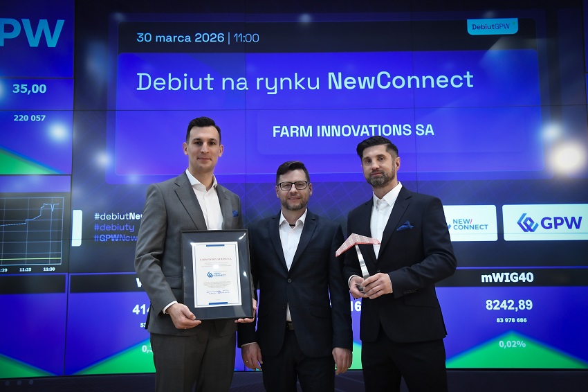 30 marca 2026 r. na parkiecie rynku NewConnect zadebiutowała spółka FARM INNOVATIONS S.A.