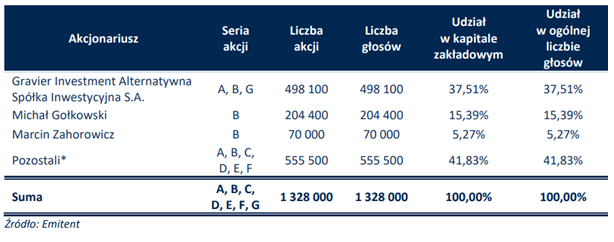 Akcje Serii G zostały objęte przez 1 podmiot tj. Gravier Investemnt ASI S.A.