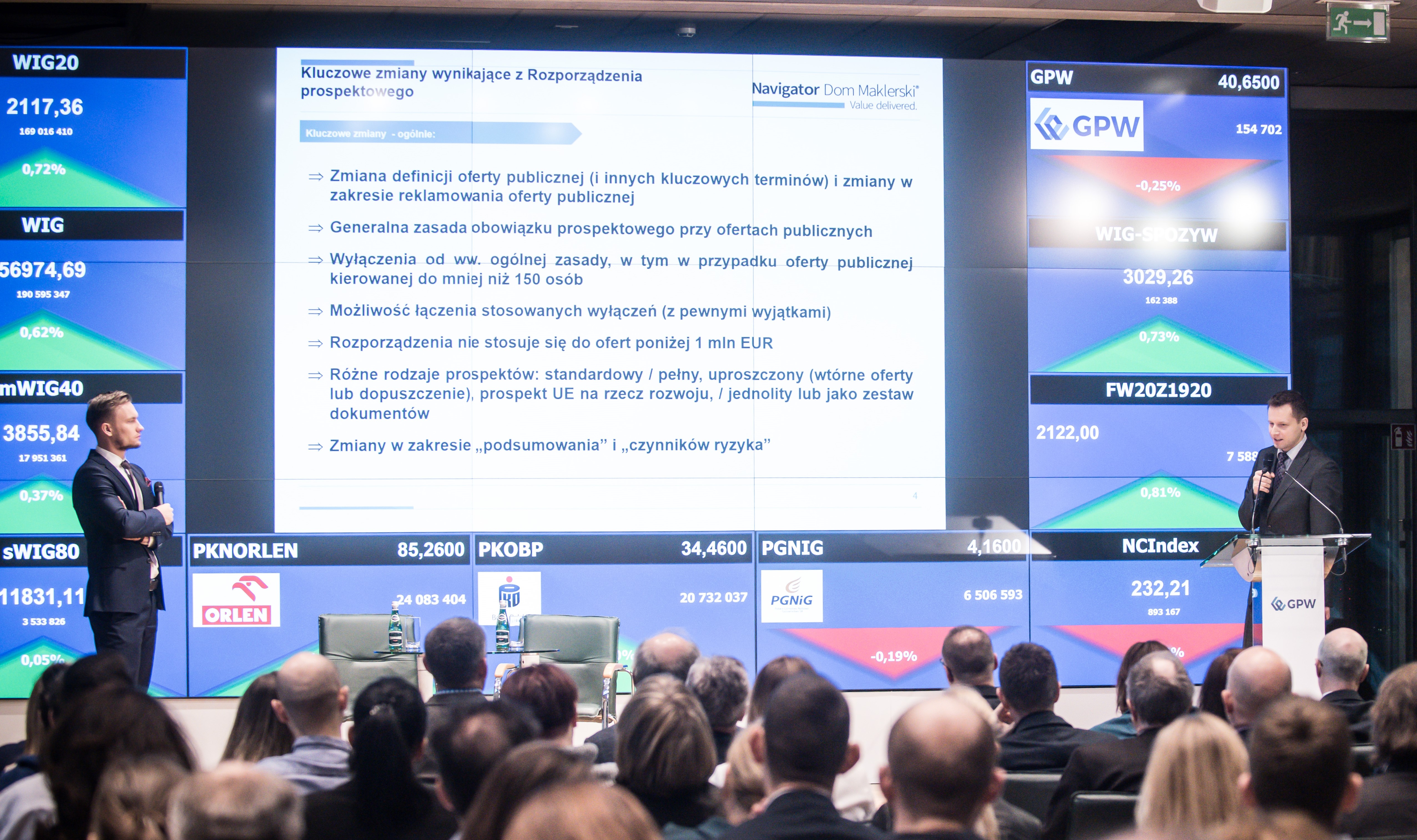 W dalszej części Seminarium przedstawiciele Navigator Dom Maklerski (Krzysztof Dziubiński - CFA, członek zarządu oraz Bartosz Krzesiak - dyrektor ECM) omówili najważniejsze zmiany wynikające z nowelizacji ustawy o ofercie publicznej i innych ustaw, istotne dla emitentów akcji notowanych w ASO na rynku NewConnect, jak również emitentów obligacji notowanych w ASO Catalyst.